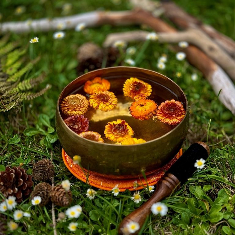 Dafür biete ich Kurse im Waldbaden sowie achtsame Klangauszeiten an.